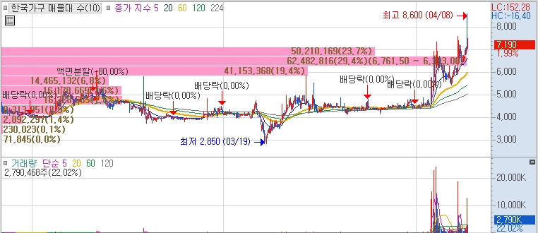 가구제조사업을 영위하는 기업을 자회사로 거느리고 있다는점에 관련주로 부각